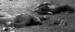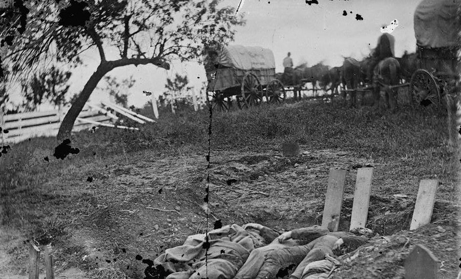 Whitman’s “Sight in Camp” is one on the saddest poems Whitman ever wrote. One assumes he is looking at dead Yankees, but we know the same sight could be seen on either side of the war. Every soldier was someone’s father, brother, son, husband, or friend. Just like every baby is a tiny Christ-child at the beginning, we are all—like it or not—“the face of Christ himself” when we die. Maybe not all soldiers are heroes in life, but Walt Whitman makes them all heroic in death.