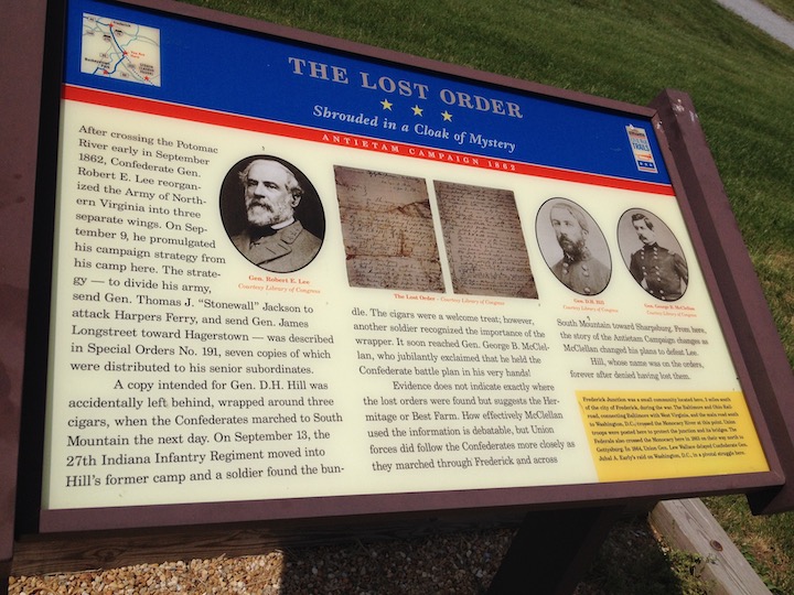 Elsewhere on the Monocacy Battlefield, on the Best farm, a Civil War Trails sign tells the story of the Lost Order and explores its implications a little: