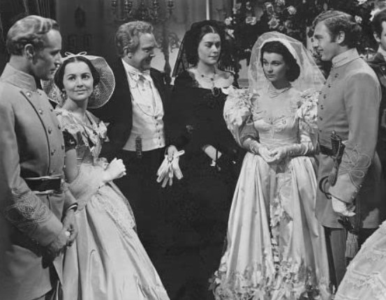 In a nutshell, the novel’s version of 1861 features a distracted Scarlett O’Hara thrown into emotional turmoil when she finds out that her crush, Ashley Wilkes, is going to marry Melanie Hamilton. She decides on a strategy to flirt with every man at the Twelve Oaks Barbeque to get Ashley’s attention and persuade him to marry her. In differing and indirect ways, her parents and enslaved Mammy advise her against this. The barbeque does not go as planned, Ashley rejects Scarlett’s declaration of love, and her reaction is witnessed by Rhett Butler, a rogue with a reputation from Charleston, South Carolina. Shamed and embarrassed, Scarlett is momentarily distracted by the announcement of Lincoln’s call for volunteers to put down the Southern secession forces the “local Troop” to prepare for war against the Yankee invaders. In an attempt to make Ashley regretful and to save her own reputation, Scarlett agrees to marry Charles Hamilton (Melanie’s brother). Charles goes to war and dies of illness. Scarlett goes into mourning, then finds out that she’s pregnant with Charles’s baby and delivers her first child at the beginning of 1862. She does not like the baby (named Wade Hampton Hamilton) and is severely depressed until the invitation arrives in May 1862 to journey to Atlanta.