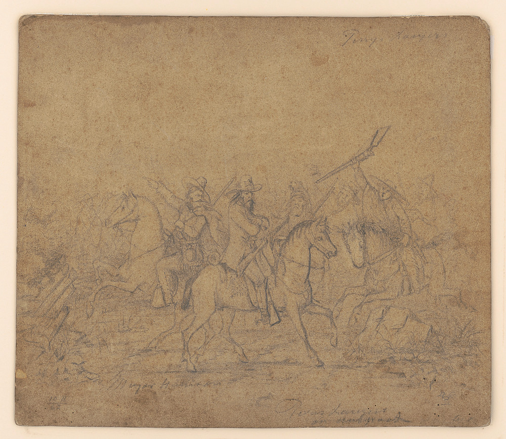 Artillery batteries from both sides engaged briefly, however changing troop positions on the field exposed Union infantry to friendly fire from their own batteries. Battery A of the First Ohio Artillery commanded by Captain Cotter was effective in silencing four guns of Mississippi Captain Charles Swett’s Warren County Light Artillery Battery, aided by a flanking maneuver from Erdelmeyer. Von Trebra led an advance on the rebel left center, drawing a furious response from the Texans, who recklessly drove their horses into and through the Union ranks, only to be chopped down by reserves led by Adjutant Carl Schmitt.