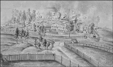 Assault on Fort Tyler. From sketch by Robert Merrill, 1st Wisconsin Cavalry.