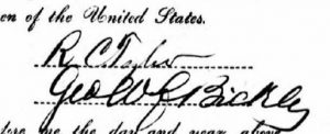 In the passport application Reuben states he was born in Massachusetts, and lives in Maryland. The handwriting in the “R. C. Tyler” signature on this application compares favorably to General Tyler’s wartime “R. C. Tyler” signature.