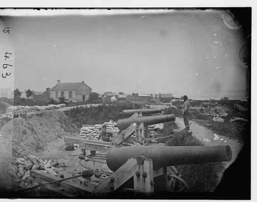 Battery at Yorktown with Grace Church in the background (Library of Congress https://www.loc.gov/item/2018671730/)