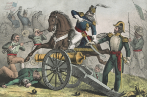 The Battle of Resaca de la Palma was May’s most glorious hour. Taylor ordered him to support First Lieutenant Randolph Ridgely’s guns taking heavy fire from an enemy battery. May and his squadron charged down the Point Isabel Road in columns of four and overran the battery and captured Mexican general Rómulo Díaz de la Vega and some others. But during the charge, his troopers became overextended and took heavy losses before returning to the American lines.[6]
