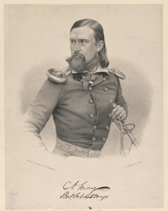 After a 33-hour cannonade, the Union garrison at Fort Sumpter surrendered. Seven days later, Brevet Colonel Charles A. May abruptly resigned his army commission. He was among the most senior ranking U.S. Army officers to leave the service. Washington, D.C.’s Evening Star listed his name only third behind Joseph E. Johnston and Robert E. Lee as the most notable officers to resign.[16] May quietly headed to New York City and took one of the last positions that seemed appropriate for a veteran dragoon: He became superintendent of the Eighth Avenue Railroad Co., a company owned by his father-in-law. It seems strange to picture a towering 6-foot, 4-inch ex-dragoon officer roaming the bustling streets of New York City wearing a suit and carrying a cane instead of the frontier plains wearing a dusty frock coat and carrying a saber.