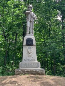 Shattuck and Dickey had a lot in common. They both went to college. They both served as Commissary Sergeant. They were both well liked. They both were natural leaders and rose to Lieutenant to lead companies in the 24th. Sadly they both died on July 1 at Gettysburg. Both of their families came looking for them. Sadly, Shattuck’s body was never found but his sister in law was apparently told Shattuck was shot once and was ordered to fall behind the lines for treatment. Apparently he refused and was shot again. He still didn’t go get care and was shot a third time and killed. His diary is preserved and there’s a bullet hole right through the middle of it. His sister in law thinks that is the shot that killed him but I’m not sure.