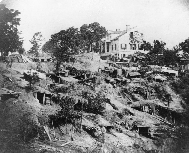 Vicksburg was the last stronghold guarding the Mississippi River.  The side that held this town thus commanded the tons of supplies moving to-and-fro.  The Confederacy also could only challenge the Federal Navy’s control of the river by means of the land-based artillery at Vicksburg.  Furthermore, Port Hudson, Louisiana and other forts south of the city would become untenable if Vicksburg fell.  By 1863, Vicksburg was the last remaining junction that connected the communication lines across the breadth of the Confederacy.  Arkansas, Texas and Louisiana lay to the west.  Mississippi, Alabama, Tennessee, Georgia, Florida, South Carolina, North Carolina, and Virginia lay to the east.[4]