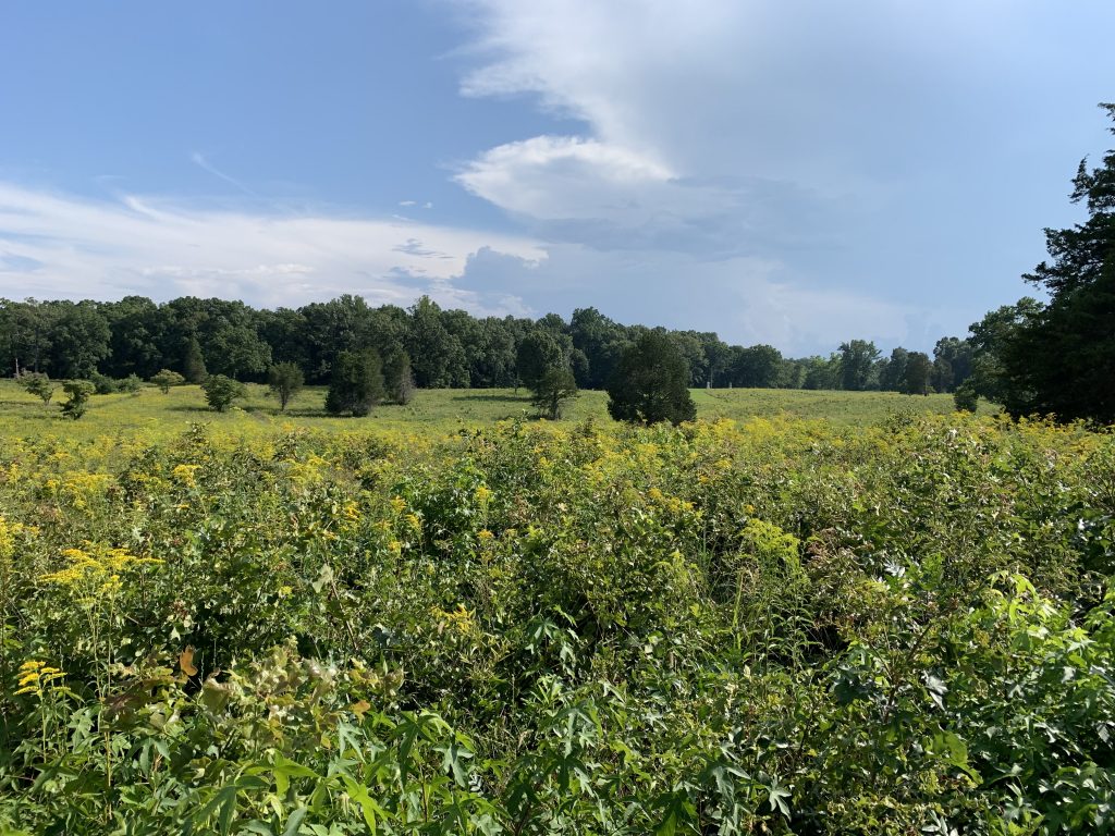 Something seemed off to me and I realized I was the only person there. The parking lot was empty and no one else was on the trails. All I heard were the chirping of birds and buzzing of insects. Some deer, perhaps ten in all, eyed me from different parts of the trail and adjoining woods. This was a stark contrast to the mayhem of 1864, where tens of thousands of men were packed into one square mile firing at one another so much that entire trees were felled by bullets.