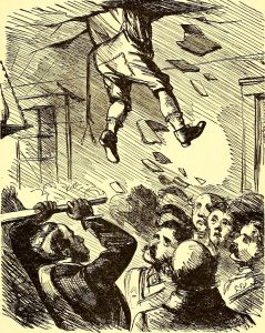 Sut Lovingood first appeared as a narrator in Harris’s work in 1854 and was used increasingly to express the opinions of a stereotypical farmer of rural Southern Appalachia. Sut considers himself a “nat’ral-born fool” spawned to raise “pertickler hell.” Author Harris describes Sut as a “queer looking, long legged, short bodied, small headed, white haired, hog eyed, funny sort of genius.” Apparently, Sut “…haint got nara a soul,–nuffin but a whiskey proof gizzard,” is “too durn’d a fool tu cum even onder millertary lor, ” has legs just shorter than a grandaddy spider but can still beat that spider, “… jis’ es bad es a skeer’d dorg kin beat a crippled mud turkil.” Additionally, Sut can “… chamber more cork-screw, kill-devil whiskey, and stay on aind, than enything, ‘sceptin only a broad bottum’d chun.” And “las’ly,” he “kin git intu more durn’d misfortnit skeery scrapes, than enybody, an’ then run outen them faster, by golly, nor enybody.”