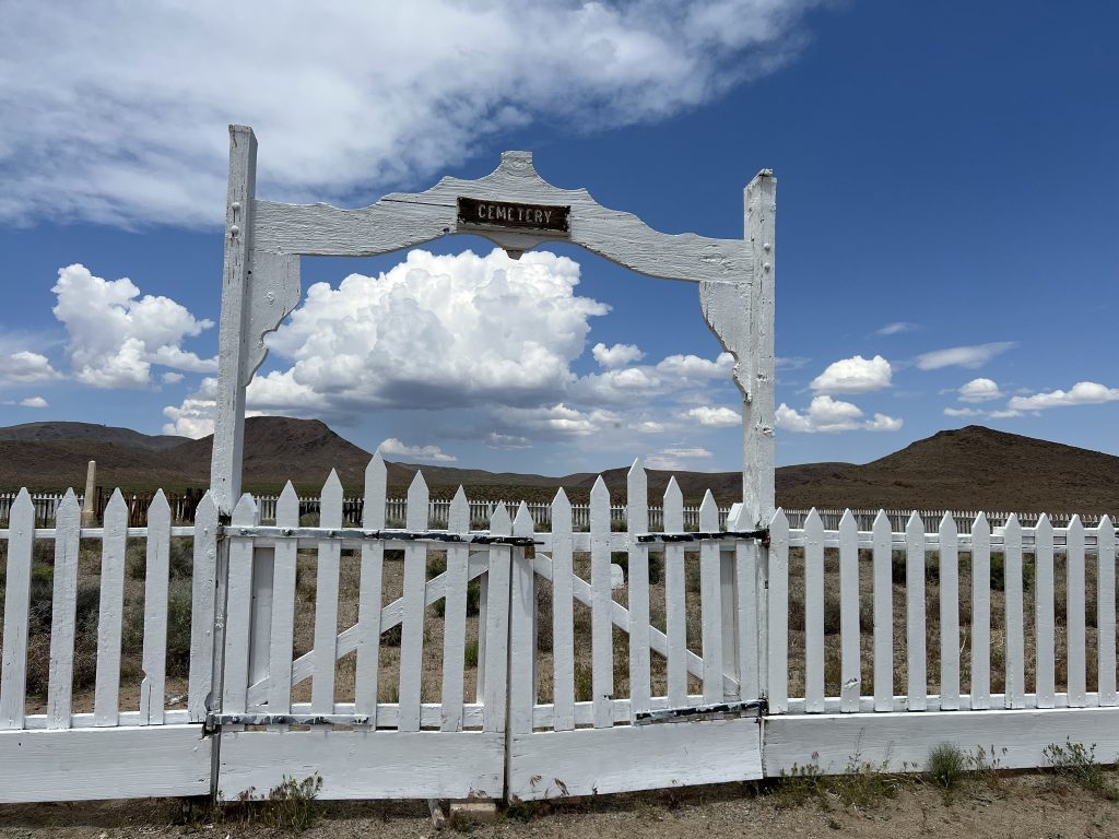 The old post cemetery, which once held about fifty graves, now holds only the Buckland family. When the post was abandoned by the army, the bodies of soldiers were transferred to Carson City – about thirty miles distant.