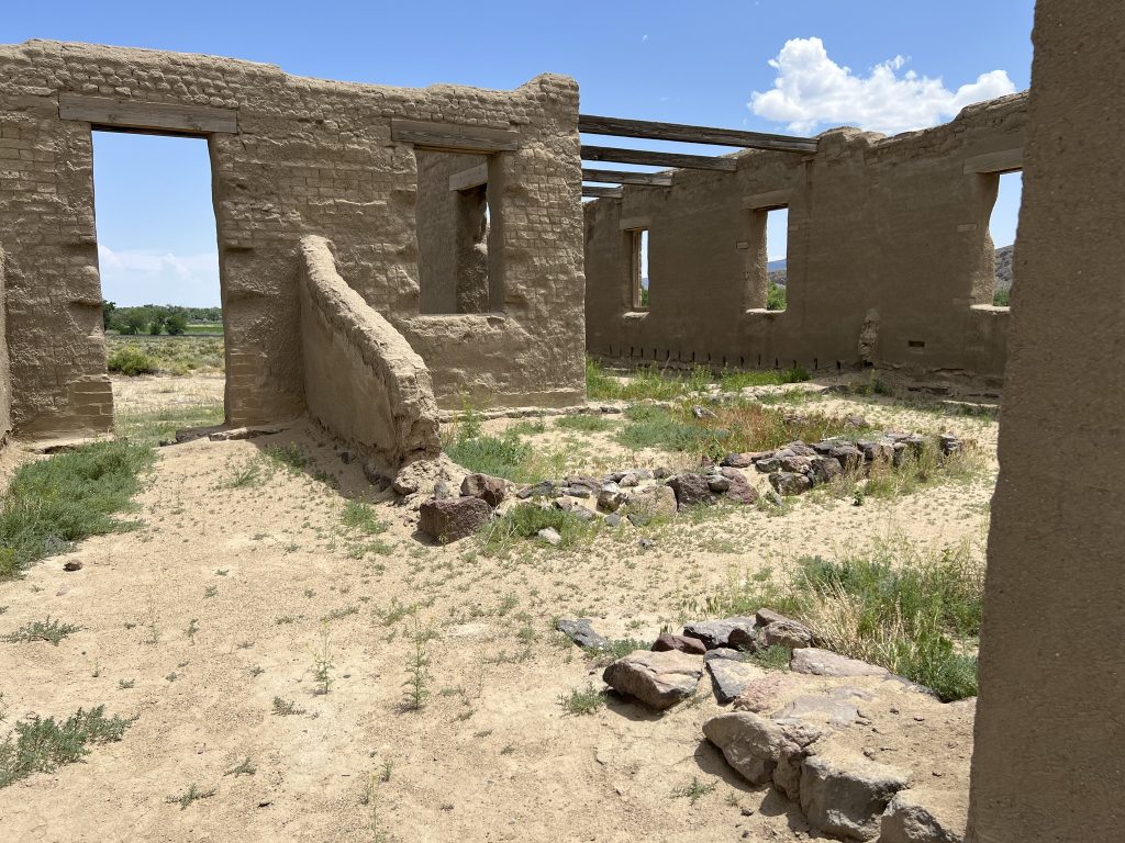 The ruins outline what was a complex of buildings making a square with a central parade ground. Built on stone foundations, the adobe buildings would house nearly 300 soldiers and would be named after the Inspector General of the army Sylvester Churchill.