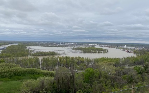 But most fascinating to me as I look down on the waterway is the outline of the former bend in the river. I can still see the old trace of the great river bowing in a big watery arc. It is literally diversion-canal backwater now, but it was once the mighty Mississippi.