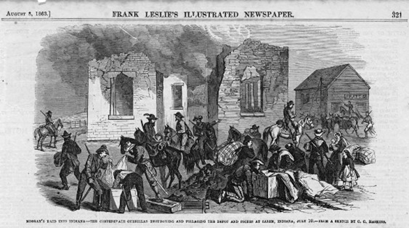 From Corydon in southern Indiana, the rebel raiders made their way north. Author Lester Horwitz likens Morgan’s movements through Indiana as a “broken field runner,” zigzagging across the state.