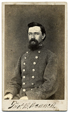 ‘Twas a calm still morning. All nature had put on her most attire. The steady breeze from the Sunny South caused the forest through which we threaded our winding pathway to appear a living green. … Ascending a gentle slope to a wide plateau of elevated ground, the eye looked over a beautiful landscape to the west, north and east for miles and miles. On my right, over fields of waving grain, waiting for the sickle, I could just discern our advance guard in command of Colonel Dick Morgan.