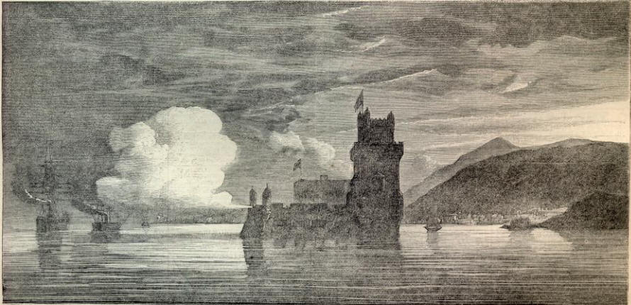 It was the violation of this 24-hour rule that caused Belem Tower to fire on USS Niagara. From the perspective of that fortification’s commander, CSS Stonewall was legally departing Lisbon and USS Niagara was illegally following. Thus, soldiers inside Belem Tower, “famous for its political prisoners in times past,” manned their guns and according to Niagara’s logbook, “the fort opened on us and fired nine shots.”[8] Niagara immediately turned and dipped its colors as a sign to cease fire and that it was not leaving port. No sailors were hurt in the bombardment.