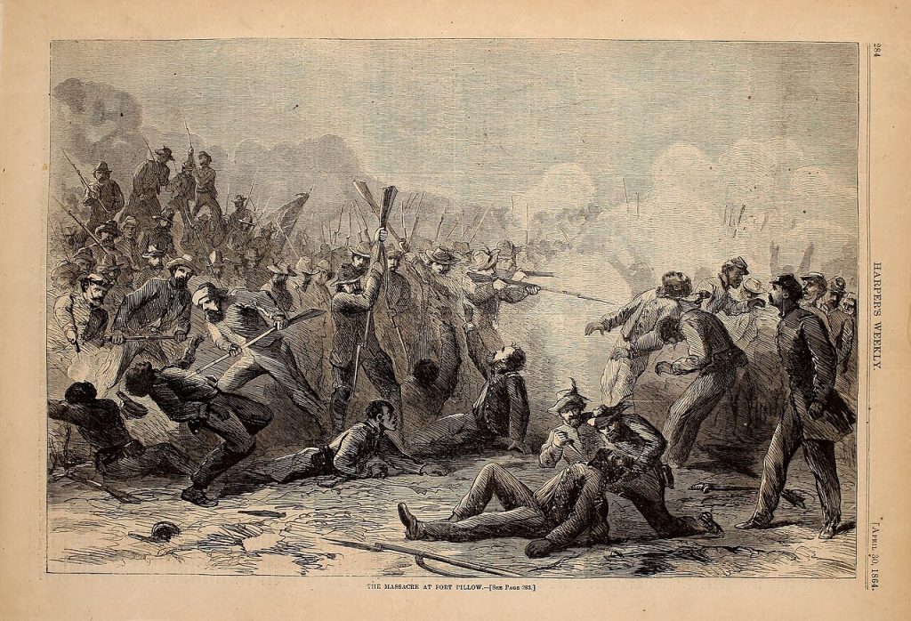 Forrest’s staunch support of slavery before the war is no secret. He entered the lucrative slave trade as a young man and became one of the richest men in the South because of it.[2] In 1861, he enlisted in the Confederate army as a private and quickly rose to the rank of general.[3] Forrest achieved infamy in April 1864 for his role in the Fort Pillow Massacre, in which Confederate troops under his command murdered 200 Union soldiers in cold blood—many of whom were United States Colored Troops.[4] Though Forrest’s role in the massacre remains disputed, he wrote that Fort Pillow “will demonstrate to the Northern people that negro soldiers cannot cope with the Southerners.” [5]