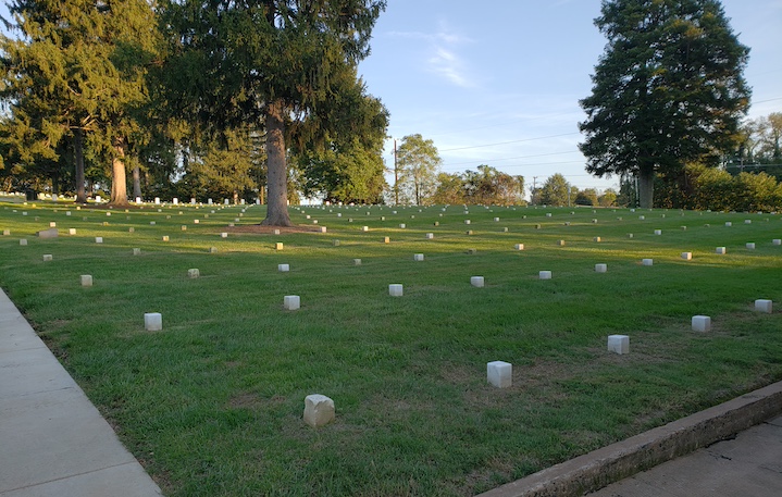 Although the cemetery was intended to be exclusive to Federal soldiers and, eventually, members of the United States armed forces, there is at least one Confederate interred here: 1st Lt. D. James V. Martin, Co. H., Palmetto Sharp Shooters, who was killed on August 30, 1862 at the battle of Second Manassas. He lies near the flagpole.