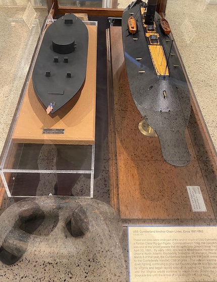 The museum tells the extensive 250-year history of the shipyard, from colonial days to the present. For Civil War buffs, there’s a good selection of naval stuff to look at, with a particular emphasis on the CSS Virginia (and its pre-conversion days as the USS Merrimack).
