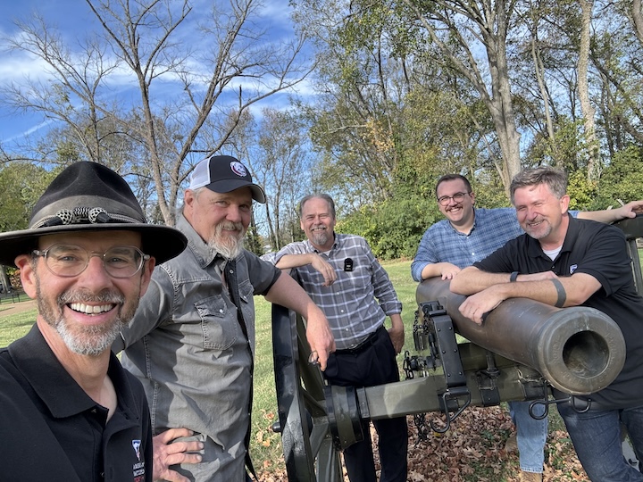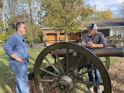 Trace has joined us at Franklin for a short series of videos for the American Battlefield Trust to commemorate the battle of Franklin’s 160th anniversary. Garry Adelman and I are there as hosts, joined by Eric Jacobson and Joe Ricci from the Battle of Franklin Trust. BOFT’s curator, Bailey Kuyat, has brought out a few artifacts from the battle to show off. Trace, a huge proponent of battlefield preservation—“huge” in both senses of the word—has come by to hang out and share his deep gravel-voiced observations.