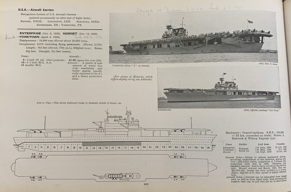 Even today, similar publications exist and remain prolifically used by sailors. The most pronounced is the line of Jane’s publications, especially Jane’s Fighting Ships, which documents all known warships globally. Like Stuart’s book, Jane’s Fighting Ships is updated annually and includes vessel nationality, dimensions, armaments, engineering equipment, and ship history. It is an easily accessible resource for any naval officer to quickly identify vessels sighted on the horizon, or to study international naval capabilities. I personally have two copies of Jane’s Fighting Ships, one from 2007 that I used when I was in the navy, and one from 1941. The 1941 edition even includes handwritten notations from the original owner who attempted keeping up with vessels lost during World War Two naval engagements.