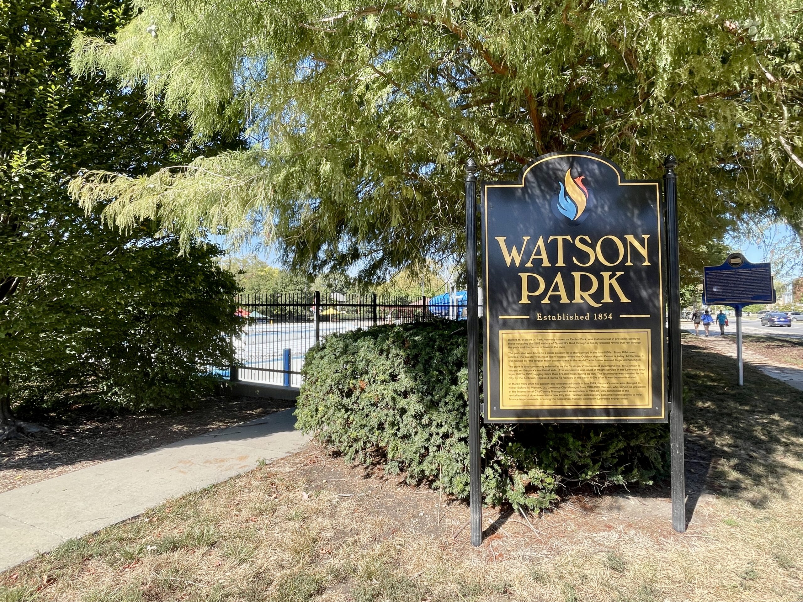 Other residents managed to hide in what is now Watson Park. In 1863, this area was a wooded ravine that separated downtown Lawrence from West Lawrence, with only a single bridge to cross it. West Lawrence was filled with cord fields and hilly terrain.