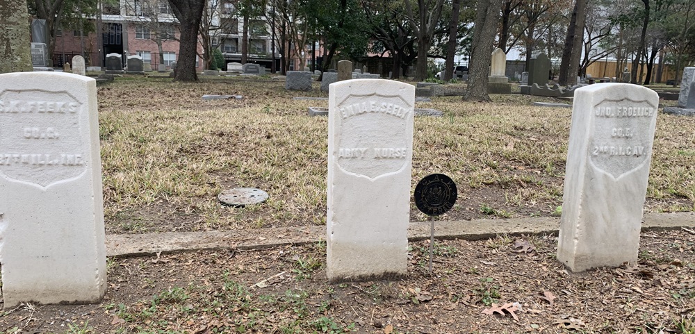 At first I did not believe him. She served in a Michigan regiment and I had never heard before that she lived in Houston. Wanting to check this information, I did some in internet searches and quickly found out that she indeed lived in Houston postwar. Her membership in the Grand Army of the Republic was with the George B. McClellan Post No. 9 in Houston! A little more research and I found out she remains buried at Glenwood Cemetery, near downtown Houston.