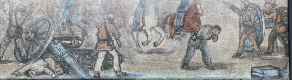 Although his paintings were produced years after the fact — one of his most recognizable works, a watercolor called “It Went Against Us,” a Mine Creek piece, was created in 1906 — Reader’s art provides personal, clear-eyed depictions of life on the battlefield.