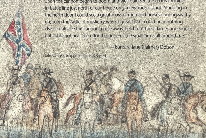 In addition to a visitor center and museum, the park includes a roughly 2.5-mile self-guided hiking trail marked with signage that interprets the battle. The story is recounted through text courtesy of the park, but is also told visually through the paintings of Reader, whose reproductions dot the site and its trails.