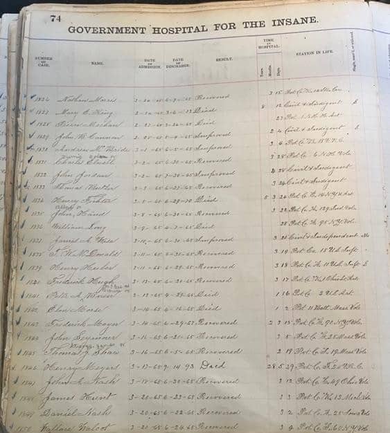 National Archives. “Admission Registers, 1855–1963.” Records of St. Elizabeths Hospital.