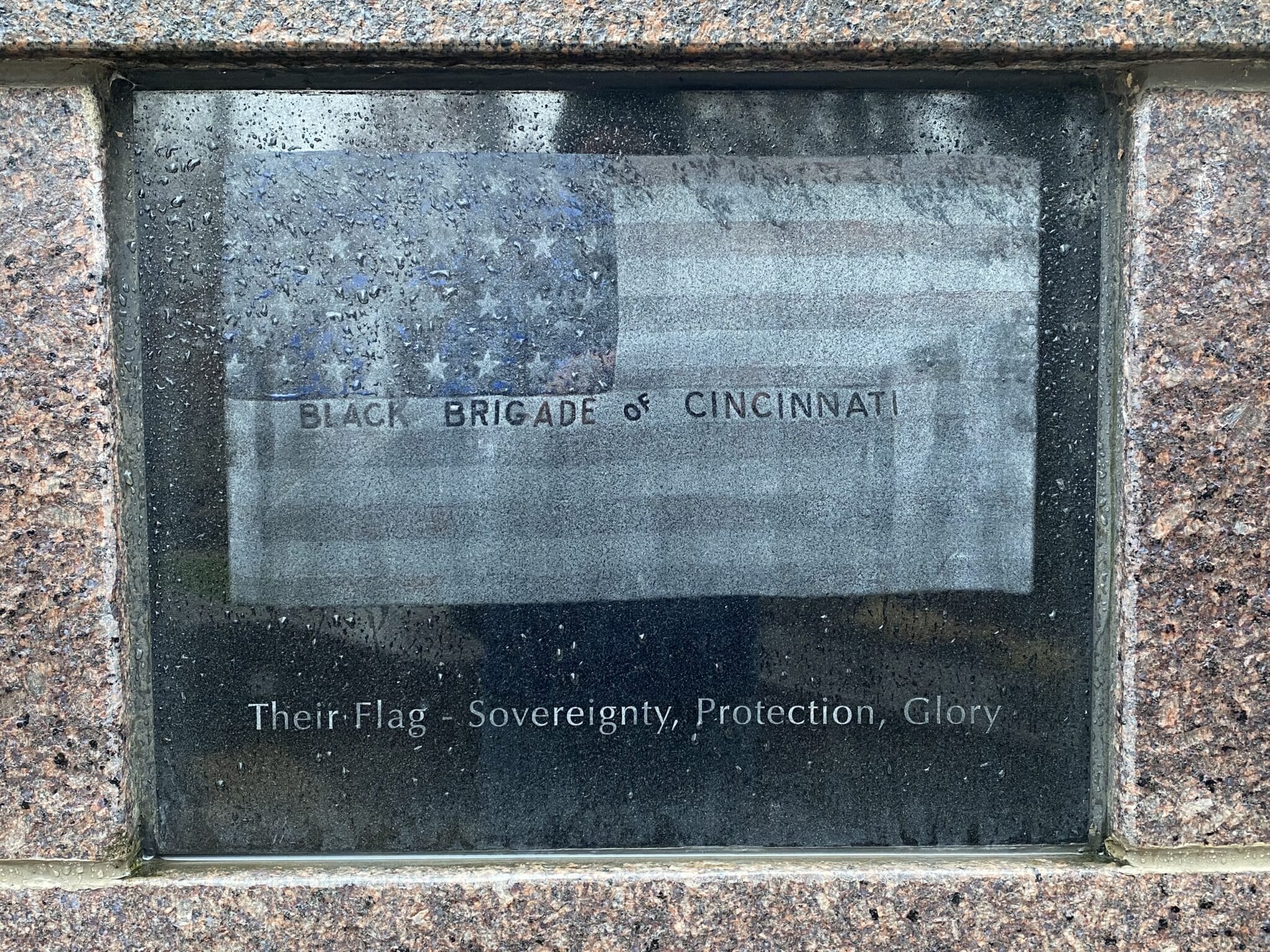 Today, this bit of Civil War history is remembered by a small portion of Cincinnati’s Riverfront Park along the waterfront that is dedicated to the Black Brigade of Cincinnati Monument. A series of interpretative signs offers a brief history of the campaign, while honoring the contributions of the members of the Black Brigade who were first impressed into service, and then subsequently volunteered to assist in the city’s defense.