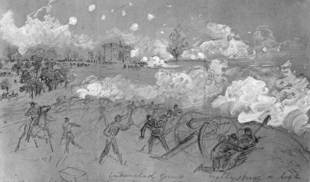 Orders to withdraw came from James Wadsworth around 5 p.m. Stevens brought his battery to the Chambersburg Pike, where the gunners swung their horse teams right (east) to mingle with retreating Union infantry. Confederate skirmishers now “overlapped our retreating columns and opened a severe fire within fifty yards” of the road, Stevens reported. “The batteries now broke into a trot.”