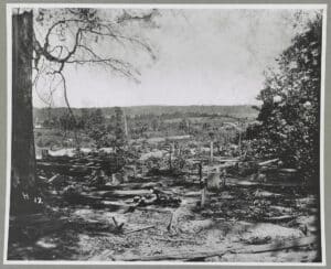 Private Richard Craig, a member of the 22nd Mississippi’s Company H, lost his uncle, Frank Craig during this fight. Frank was “shot through the breast. . . . We run the enemy out of their works,” wrote Richard, but “they formed in a ravine about one hundred [yards] beyond their works which we were not able to drive them from. . . . Uncle Frank was killed between their works and the ravine.” Offering what consolation he could to Frank’s wife, “Aunt Ruth,” Richard continued, “tell her that he joined the Presbyterian Church while we were at Montevala [Montevallo, AL] He told us while we were at Risaca [Resaca, GA] that if he got killed to tell Aunt Ruth that he hoped to meet her in heaven.” Major Oatis reported that upon meeting this charge, “we were forced to fall back” to the line along the road “where the temporary works afforded us partial protection.”[1]