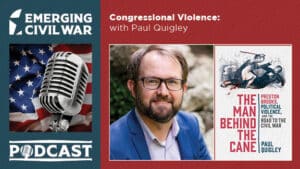Discussions of violence in Congress have made headlines again lately, from Markwayne Mullin’s confirmation hearings as secretary of Homeland Security to Heather Cox Richardson’s daily column. Dr. Paul Quigley has a new book about the most famous episode of Congressional violence, The Man Behind the Cane. He joins the Emerging Civil War podcast to talk about the infamous caning of Sen. Charles Sumner by Rep. Preston Brooks.