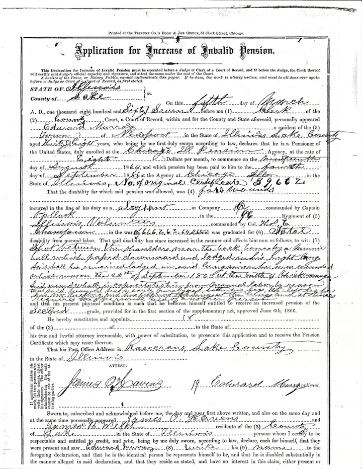 Copy of Edward Murray’s “Application for Increase of Invalid Pension.”